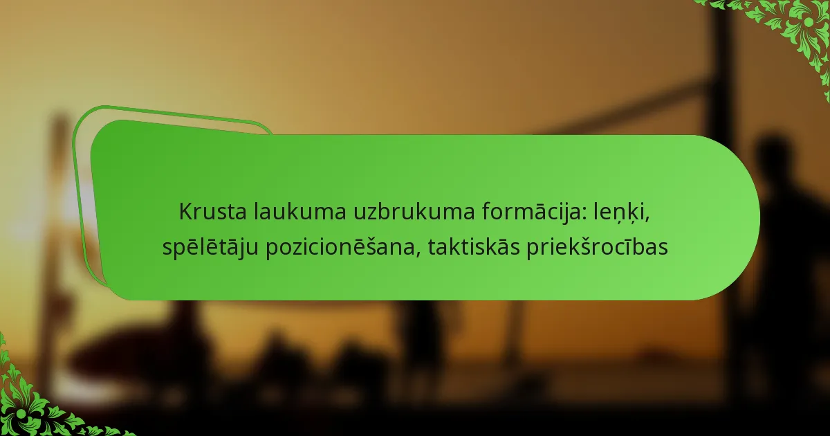 Krusta uzbrukuma formācija ir stratēģisks pieejas veids, kas izmanto spēlētāju pozicionēšanu, lai izmantotu leņķus un radītu punktu gūšanas iespējas, mērķējot uz pretinieku vājajām vietām. Efektīvi manipulējot ar leņķiem, komandas var uzlabot metienu precizitāti un palielināt savas panākumu iespējas. Pareiza spēlētāju pozicionēšana ir būtiska, jo tā maksimizē uzbrukuma potenciālu, vienlaikus nodrošinot gatavību aizsardzības pretpasākumiem.