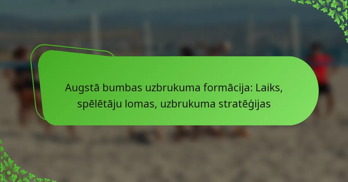 Augstā bumbas uzbrukuma formācija ir taktiska pieeja komandu sporta veidos, kas izstrādāta, lai uzlabotu uzbrukuma spēles, izmantojot gaisa stratēģijas. Fokuss uz precīzu laiku un skaidri definētām spēlētāju lomām ļauj šai formācijai radīt efektīvas vārtu gūšanas iespējas, vienlaikus izmantojot aizsardzības vājības.