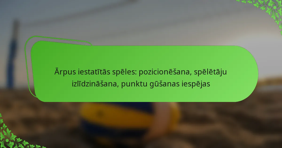 Ārējie uzbrucēji spēlē būtisku lomu, novēršot bloku uzmanību no setters. Viņu galvenā atbildība ir iesaistīt blokus, veicot agresīvus uzbrukumus, kas var radīt iespējas setters dump.